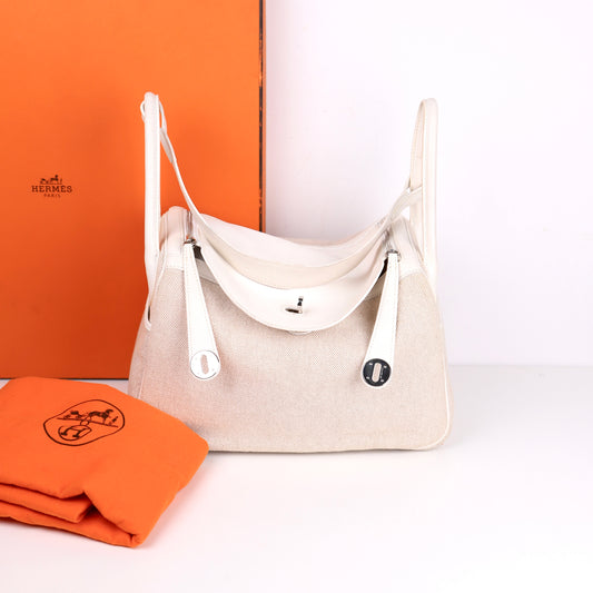 Hermes| Lindy 30 2-way Handbag Black Swift/Toile 2007