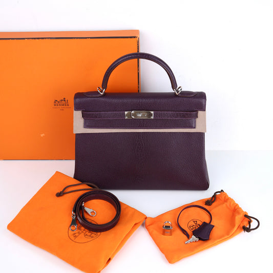 Hermes| Kelly 32 Handbag Raisin Cherve Coromandel 2002