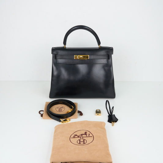 Hermes| Kelly 28 Handbag Box calf Black 2000