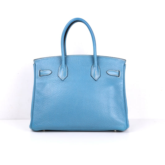 Hermes|Birkin 30 Handbag Taurillon Clemence Blue Jean 2005