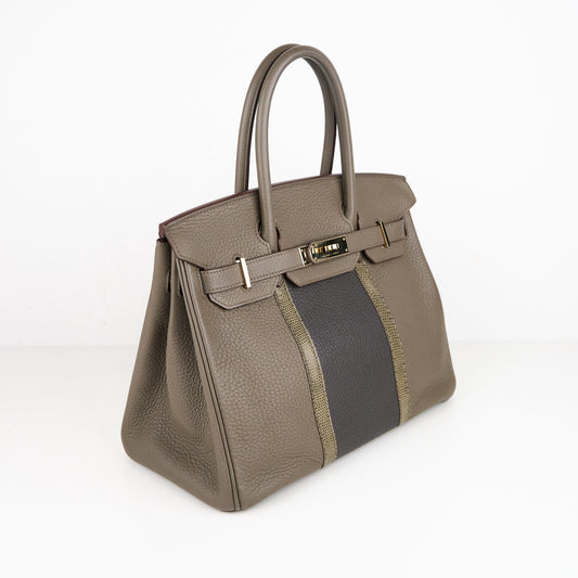 Hermes|Birkin 30 Club Togo/Lizard Etain/Graphite/Vert Olive 2011